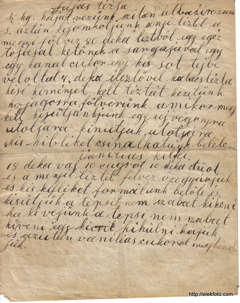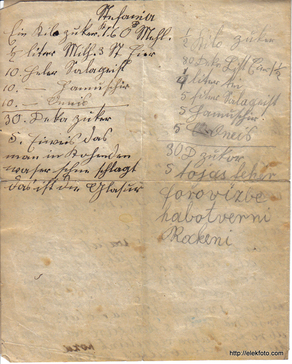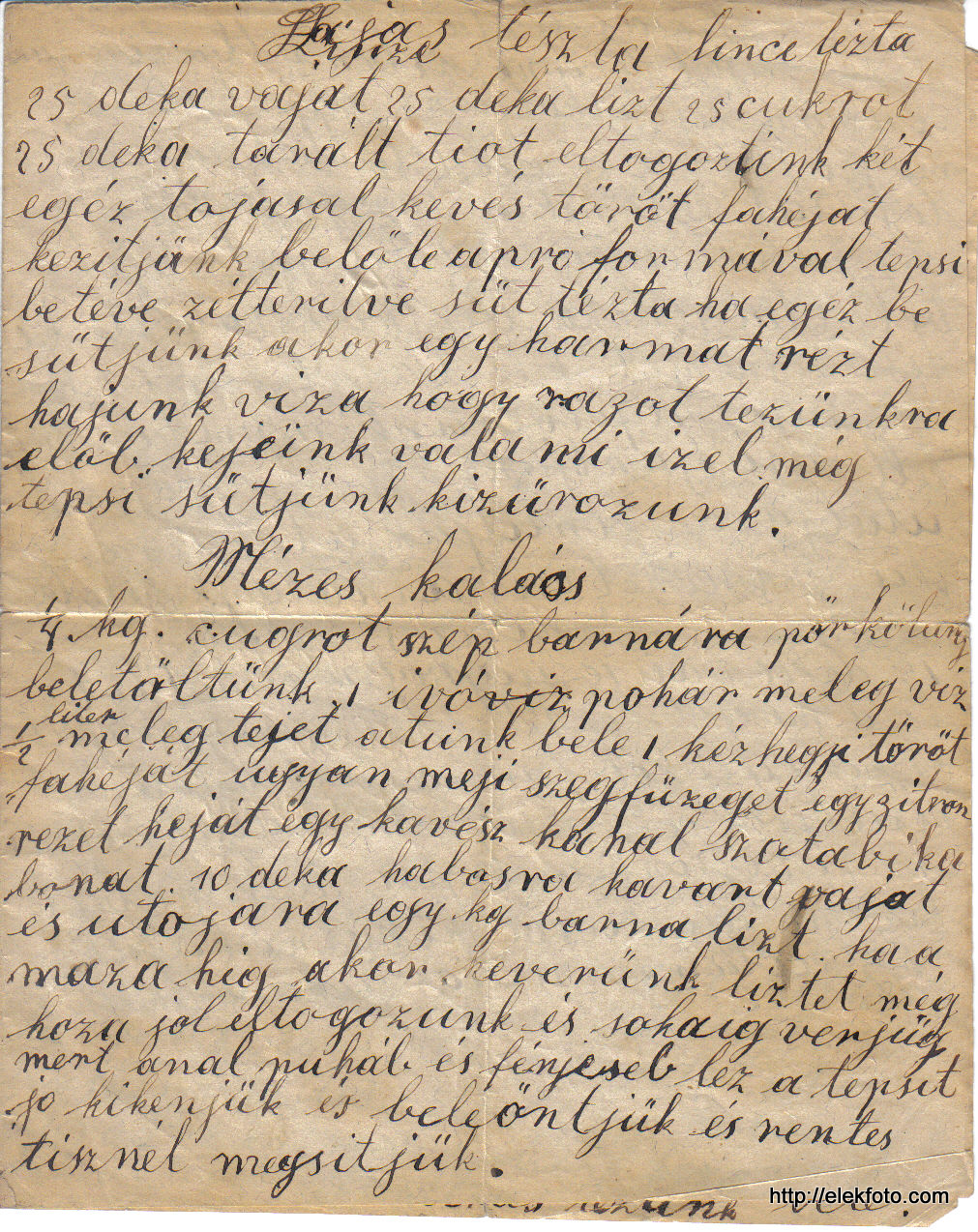 Valószínűleg a XX. század elejéről származnak a következő eleki süteményes receptek, egy eleki német asszony tollából.