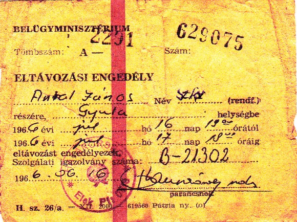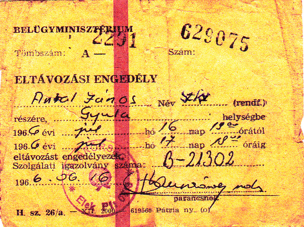 ( A 3. képen A. J. eltávozási engedélyét láthatjuk.)