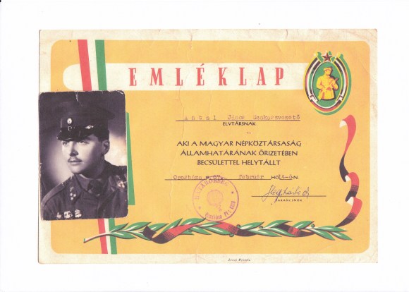 Antal János megkapta az egyik legnagyobb akkori határőr kitüntetést is, melyre ma is jogosan büszke. (4-5. kép)