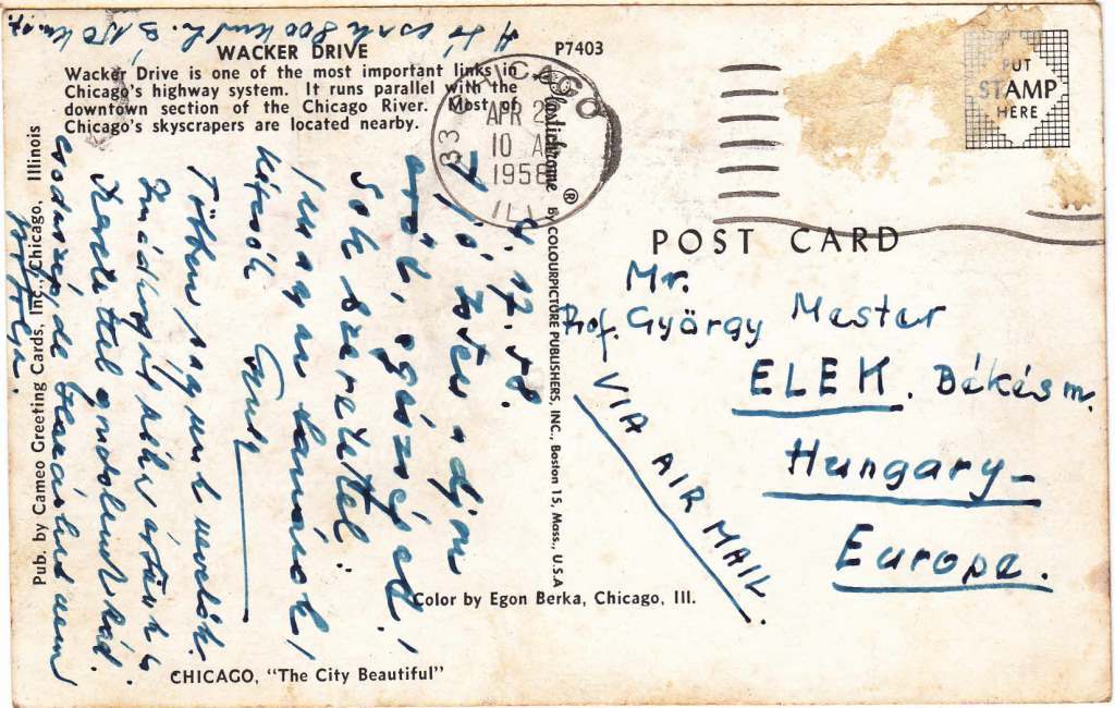 3 replies on “„Csodaszép, de hazánkat nem pótolja” Burján Gyula két képeslapja – 1958, Chicago”
