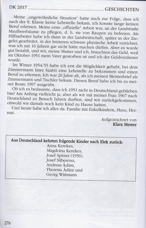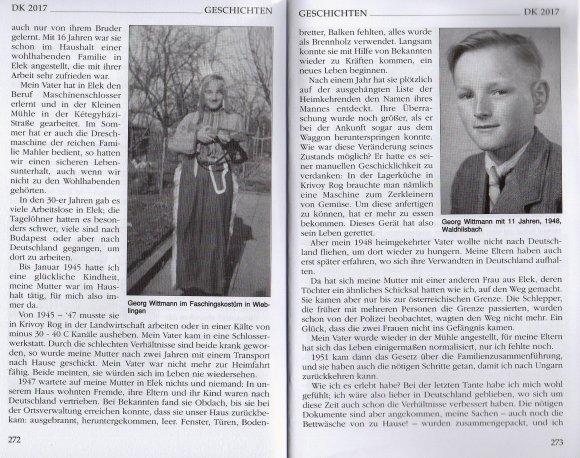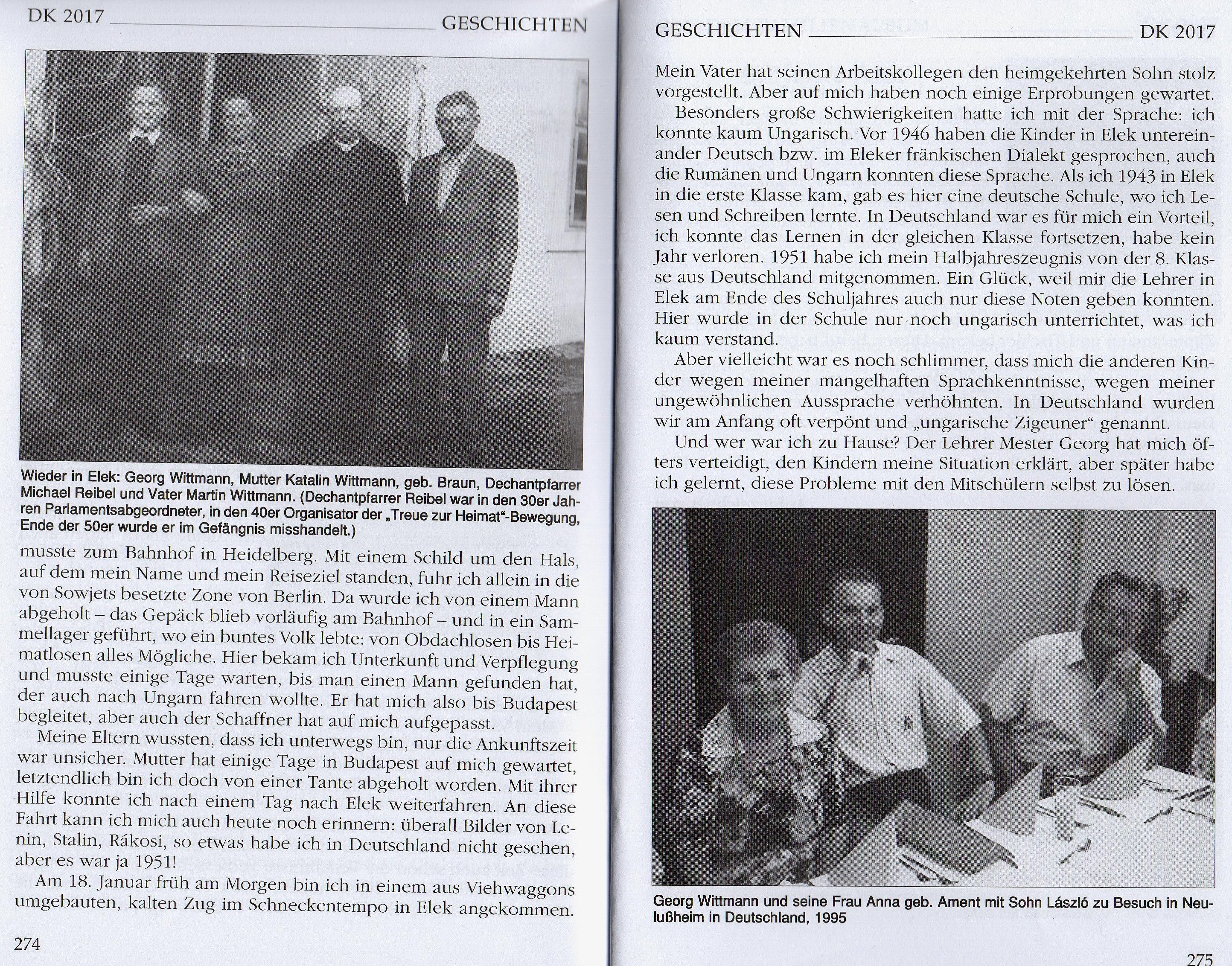 A Deutscher Kalender 2017- ben jelent meg az eleki Wittmann György ill.szülei történetének folytatása német nyelven. A későbbiekben a magyar fordítást is mellékeljük.