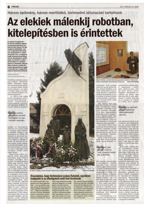 Január 11. Elek történetének egyik szomorú dátuma: 1945-ben ezen a napon 12 óra 15 perckor indult el a hosszú szerelvény az eleki állomásról a Szovjetunióba kényszermunkára hurcolt nőkkel, férfiakkal (58 átalakított marhavagonban több mint 1000 ember és 16 kocsi fával, élelemmel)
