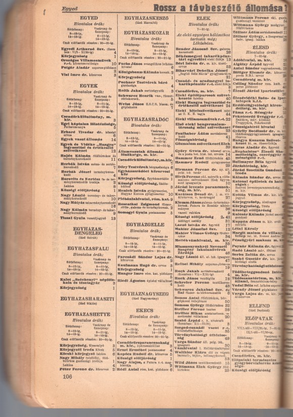 Nagyon érdekes az 1943-ból való telefonkönyv, különösen, ha az „elekfoto” korábbi cikkei és fényképei segítségével arcokat is hozzá tudunk rendelni a nevekhez.