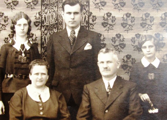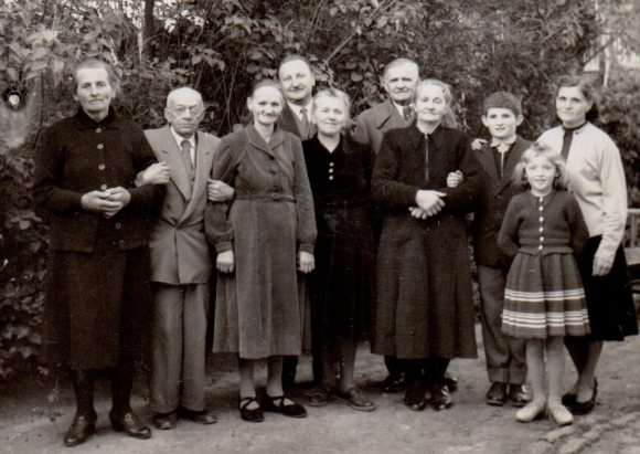 Varga Györgyné Selley Mária családja is érintett volt az Eleken 1944-46-ban történt szörnyűségekben. A kép bal oldalán édesanyja, Schinagel Irén áll, mellette testvérei: a bátyja, József és a jobb oldalon a húga, Anna . Előttük a szülők ülnek: Schinagel Ferenc szabómester , volt huszártiszt és felesége, sz. Purczel Mária.