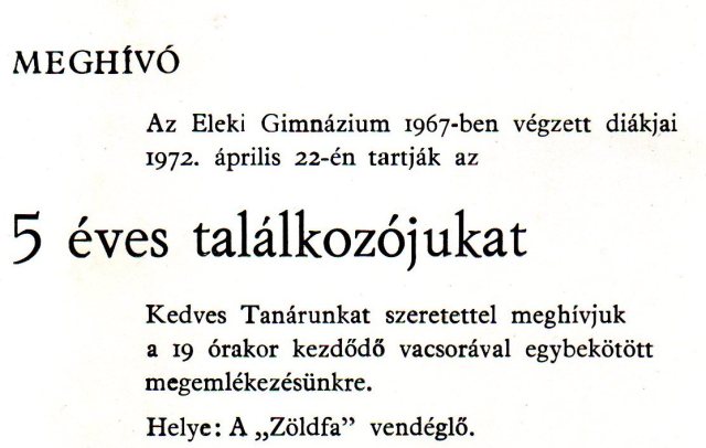 Az 1946-47-es tanévben a Polgári Fiúiskola 5. osztályát végezte Eleken, de „túlkoros” volt. Kilenc éves volt ui., amikor az oroszok bejöttek, és egy évet ki kellett hagynia az iskolában. Így lehetett osztálytársa a nála egy évvel fiatalabb Majtényi István, aki az USA –ban Steven Istvan Majtenyi néven vált ismertté és angol nyelven Elek történetét is megírta.