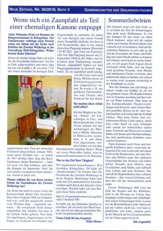 A rendezvényről és az eleki eseményeket taglaló előadásról a Weinheimer Nachrichten / Weinheimi Hírek c. lapban jelent meg az alábbi cikk német nyelven. A későbbiekben magyar fordítását is mellékeljük.