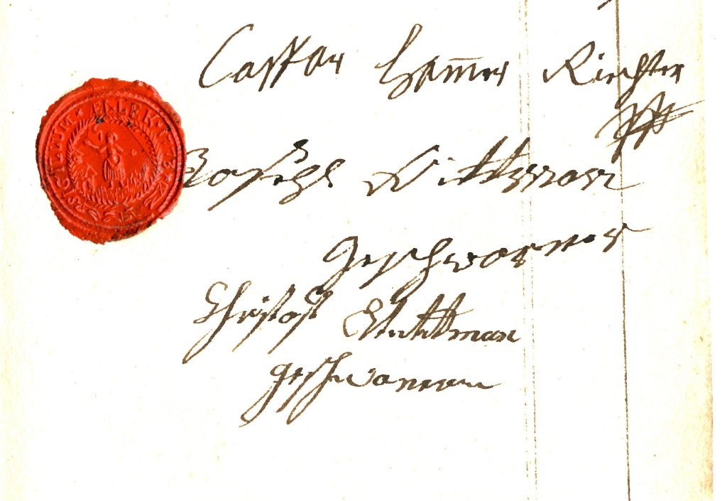 A dokumentumon Caspar ….. „Richter” (bíró) aláírása alatt Joseph Wittmann és Christoph Wittmann „geschworener” (esküdt) aláírása szerepel. A bíró és esküdtek alkották a tanácsot, ami gyakorlatilag a mai önkormányzati képviselő-testület megfelelője volt. A bíró a polgármester, az esküdtek a képviselők szerepét töltötték be.