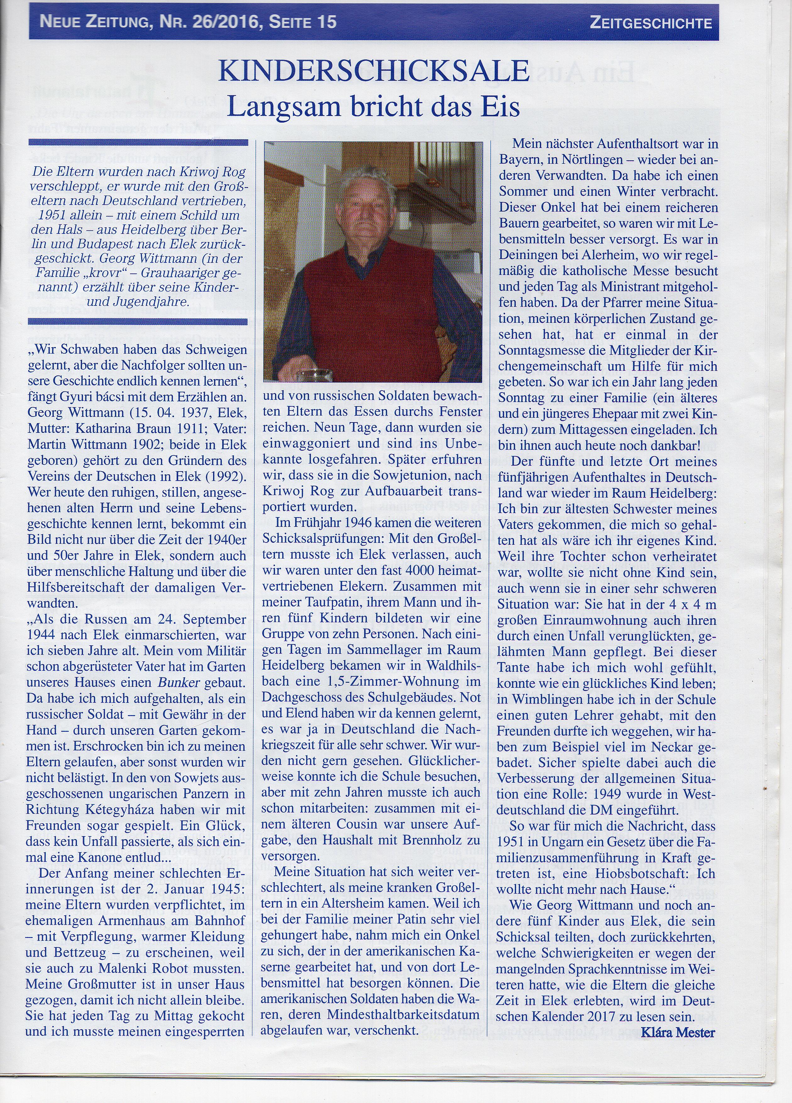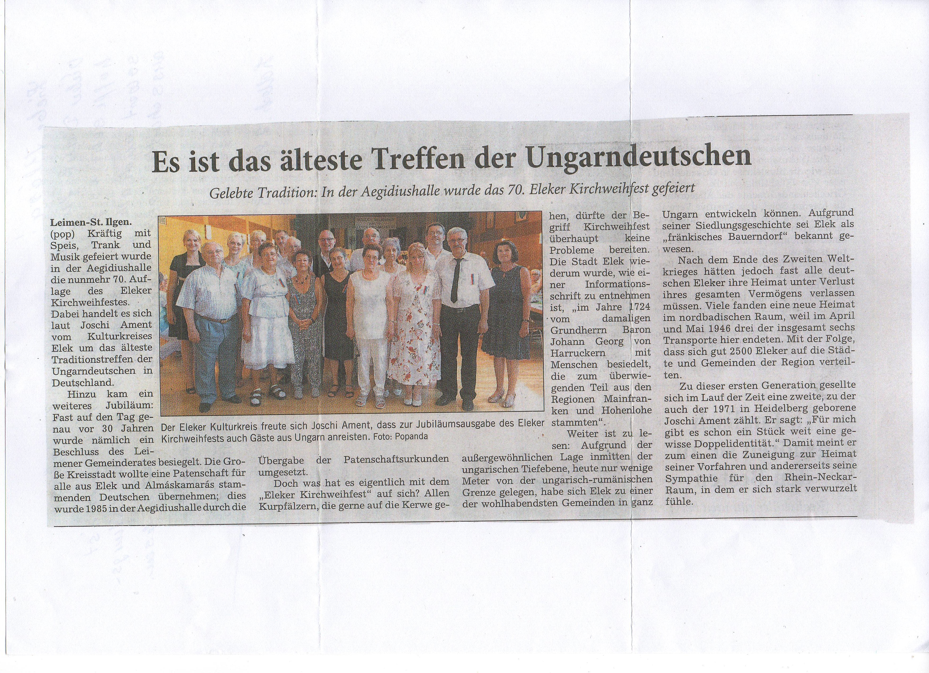 A napokban érkezett Theresia Zöllnertől Laudenbachból az alábbi, Németországban megjelent újságcikk.