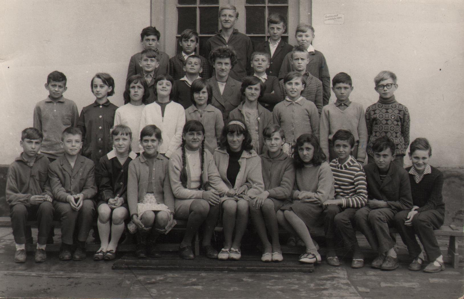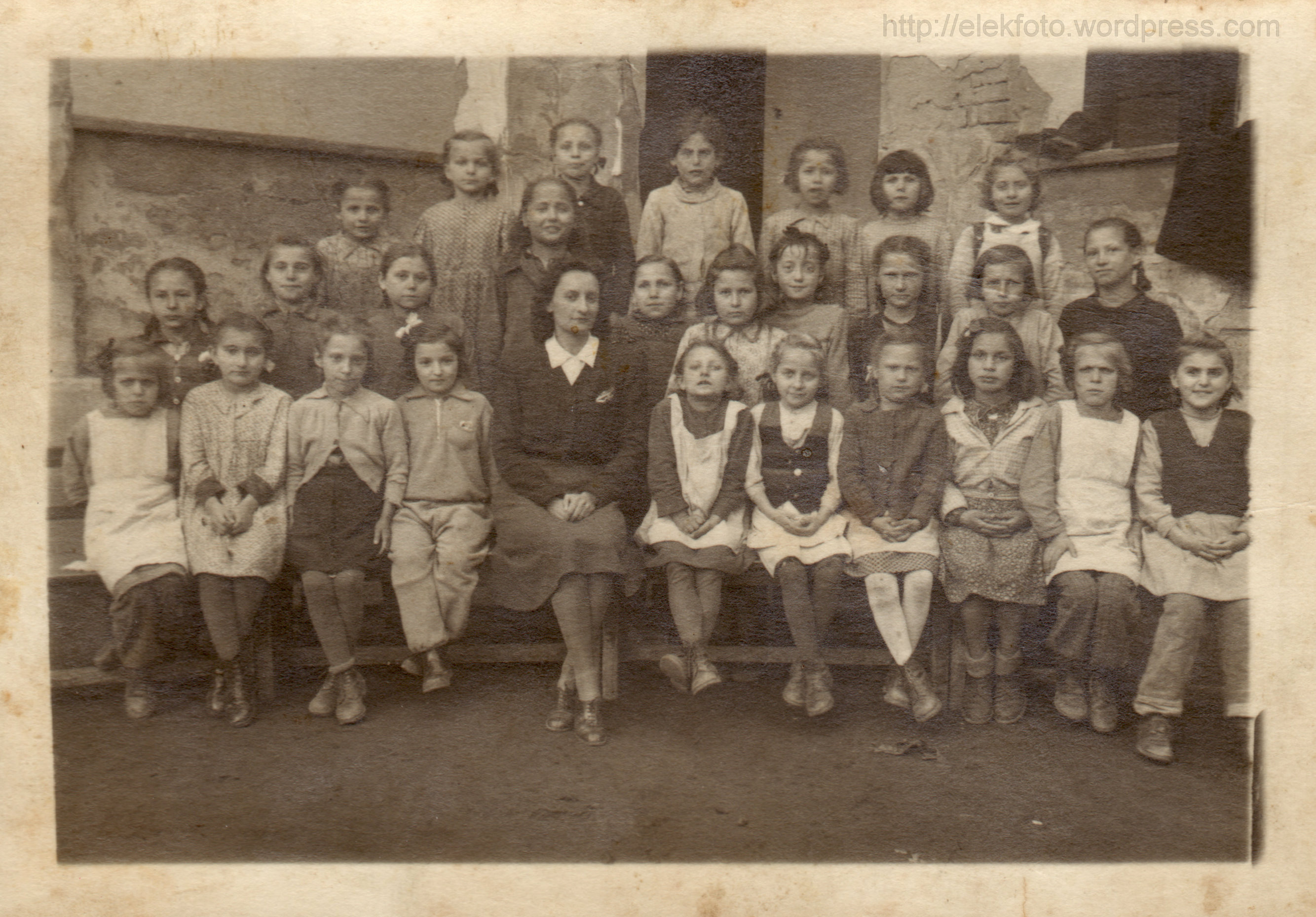 A kis Bottó Mária a kép jobb szélén látható. A tanítónő Török Magdolna volt.