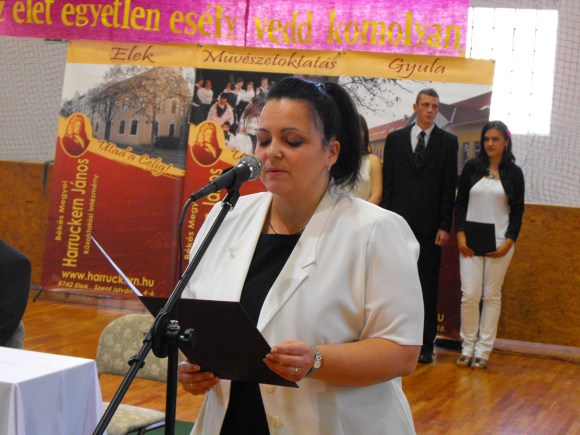 Az ünnepség ezek után a városi sportcsarnokban folytatódott, ahol Szappanos Anita igazgatóhelyettes (Gyula) felolvasta Erdős Norbert országgyűlési képviselő, kormánymegbízott üdvözletét, melyből néhány gondolat: