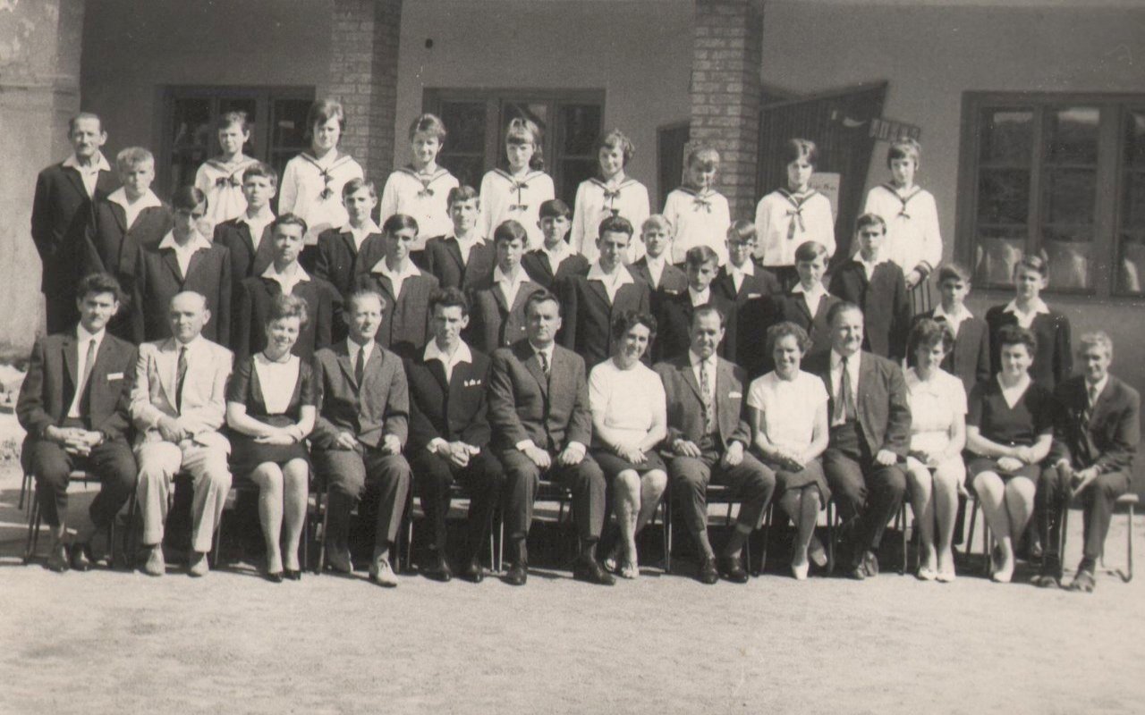 Akkoriban külön fiú- és lány osztályok voltak, a kép tanúsága szerint. A fotó az 1952-1953-as tanévben végzett nyolcadikosokat örökítette meg tanáraikkal. Középen, fehér öltönyben Radnai László, mellette balról Nádor Józsefné, Marika néni, jobbról pedig Mester Klára és Mester György, iskolánk későbbi névadója látható.