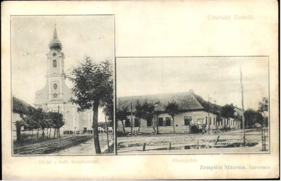 A Zempléni Múzeum (Szerencs) gyűjteményében megdöbbenésemre több eleki képeslapot is találtam. Az egyiken a templom mellett a régi községháza is megörökítésre került. Sajnos az épület már régen elbontásra került, a helyén ma a németek kitelepítésének emlékműve található.