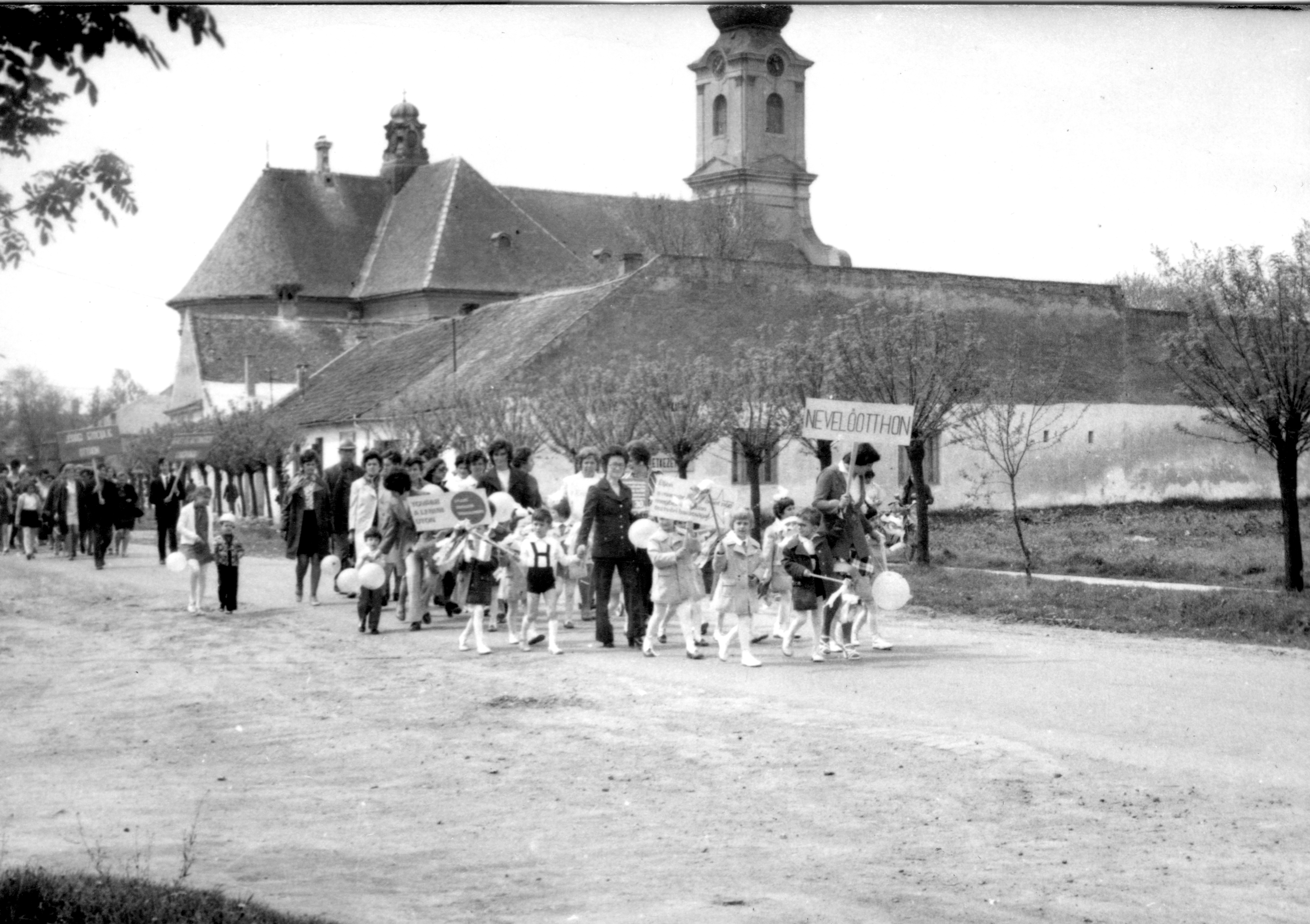 A következő képek az egykori pékség és a Zöldfa Étterem előtt vonulnak el a május elsejei felvonulásban részt vevő diákok – az eleki Általános Iskola és Gimnázium tanulói.