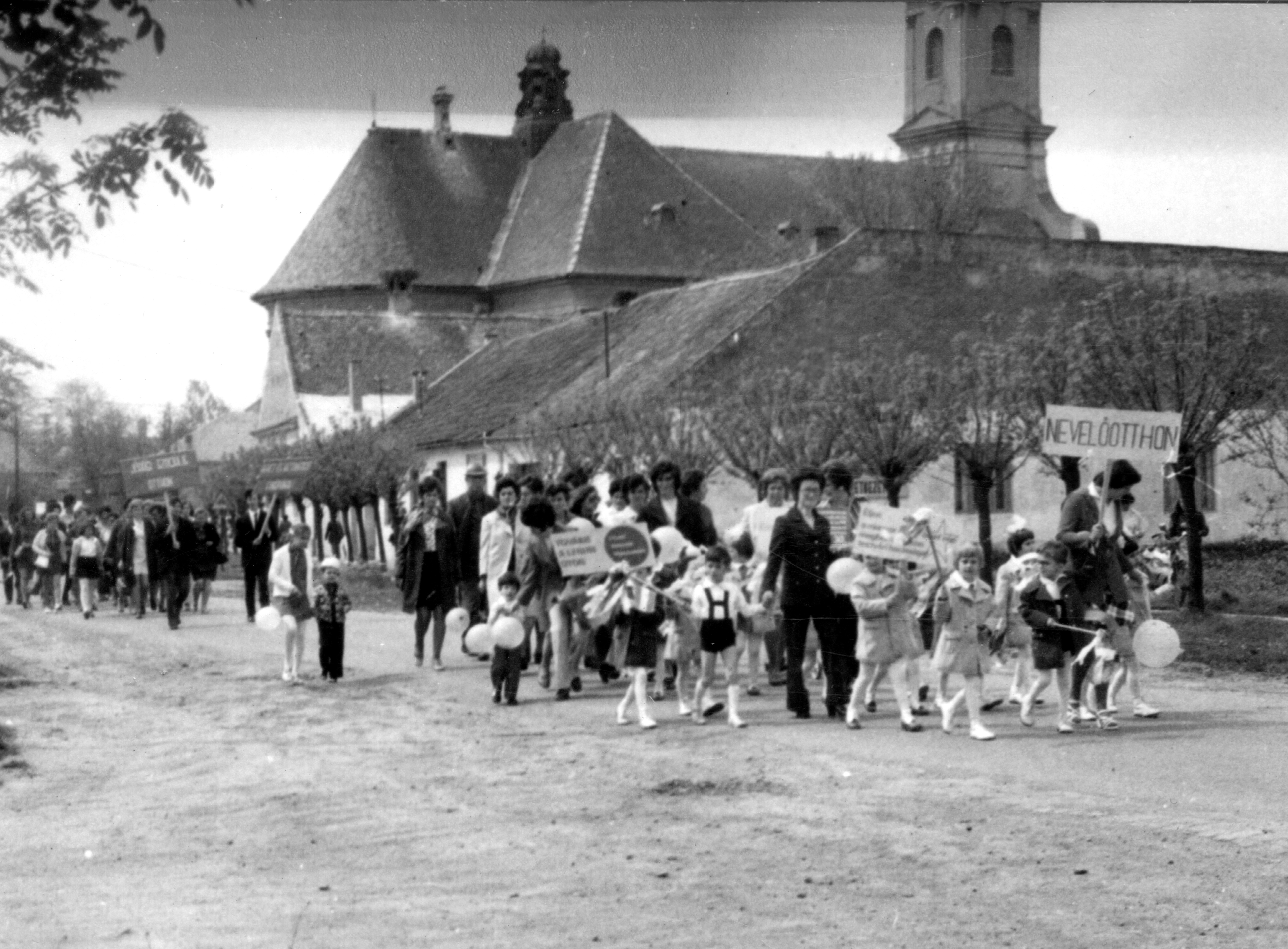 Az itt látható két fotó a József Attila utcában mutatja a felvonulókat. Érdekessége a képnek a ma ott álló tömbházak hiánya.