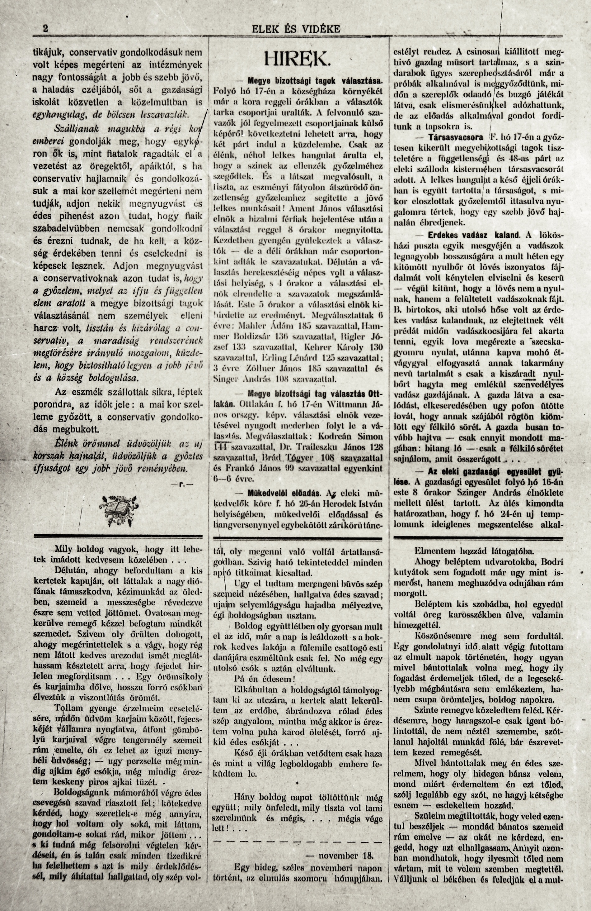 A hírek között a politika mellett szerepel műkedvelői előadás, egyesületi gyűlés, illetve vadászat is, de megjelenik az irodalom is Emenet Györgynek köszönhetően.