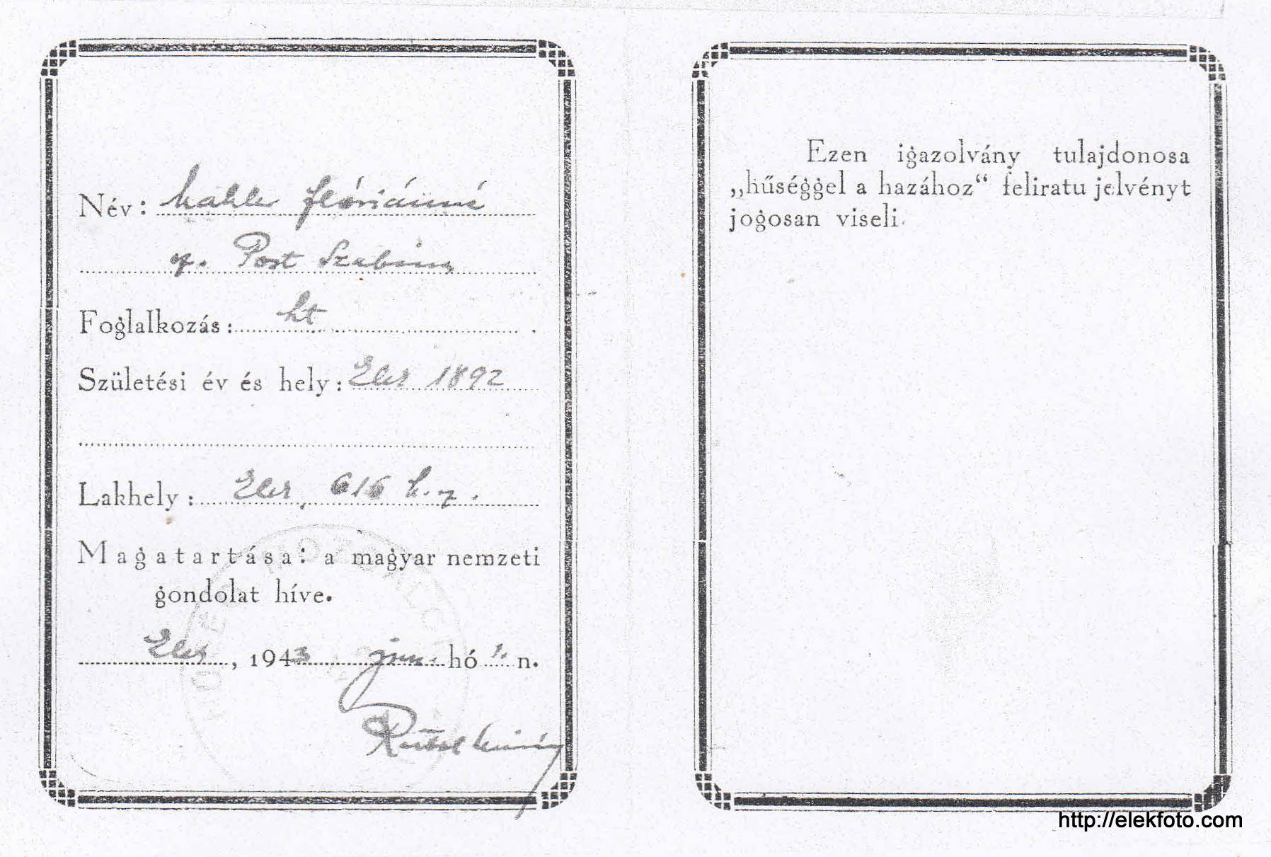 Post Szabina tagsági könyve a “hűséggel a Hazához” mozgalomból