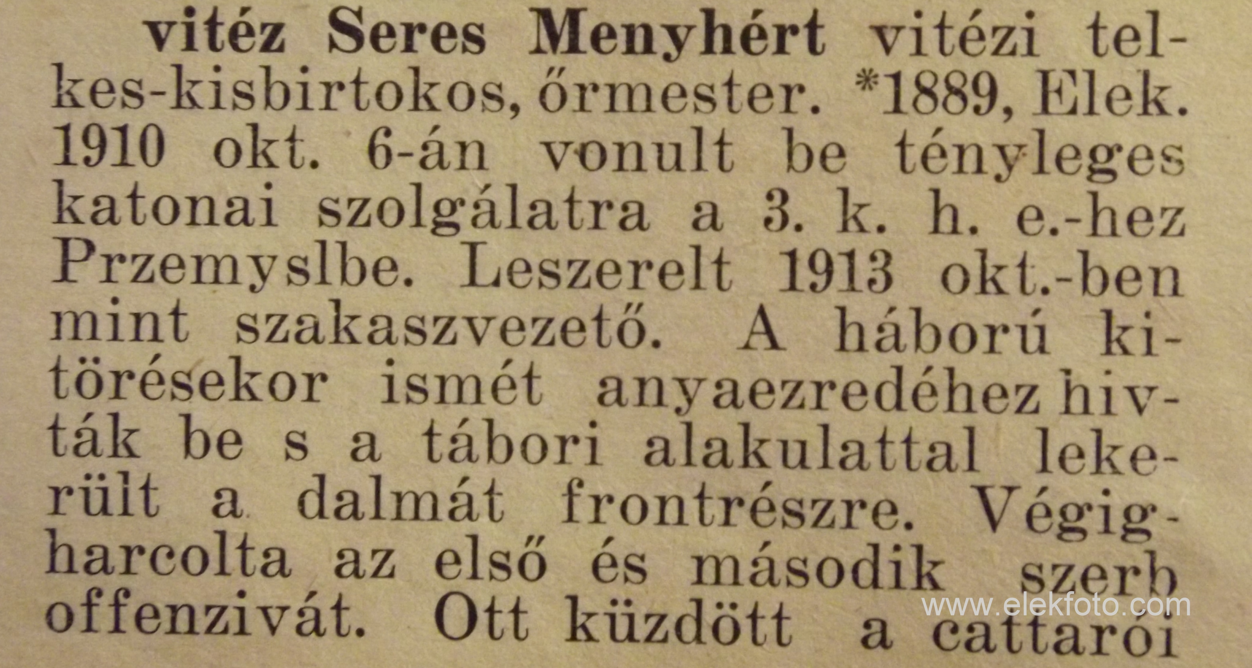 vitéz Seres Menyhért őrmester