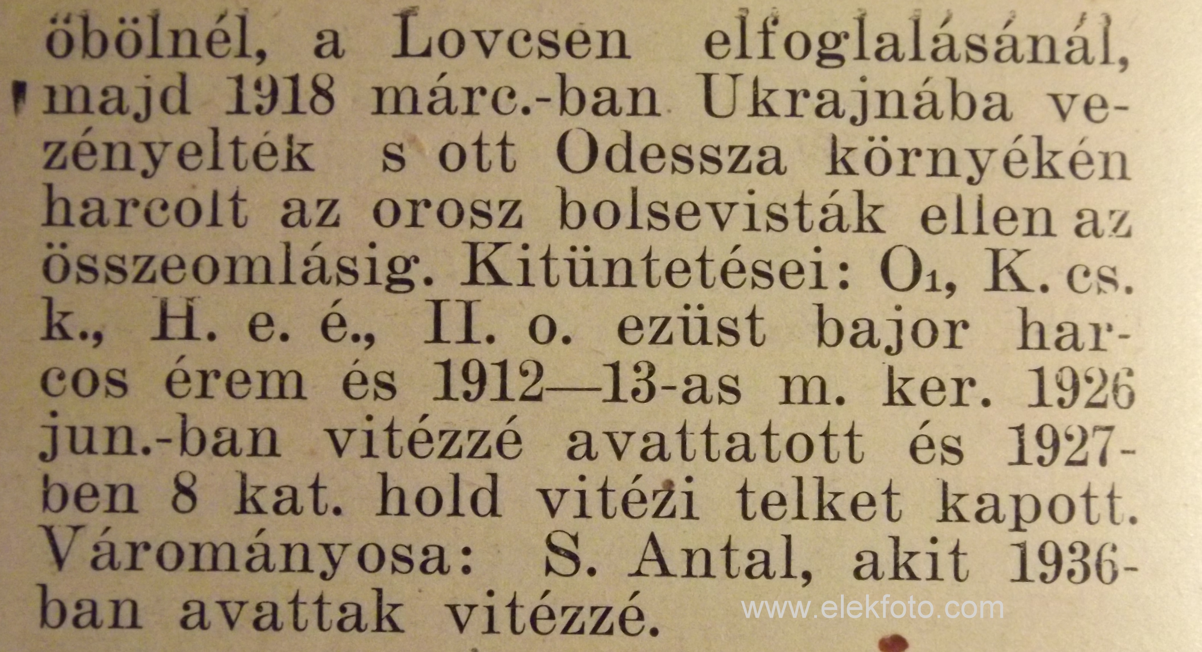„A magyar huszár” avagy „A magyar lovaskatona ezer évének története” című könyvben találtam az alábbi I. világháborúban szolgált eleki születésű huszárokat: